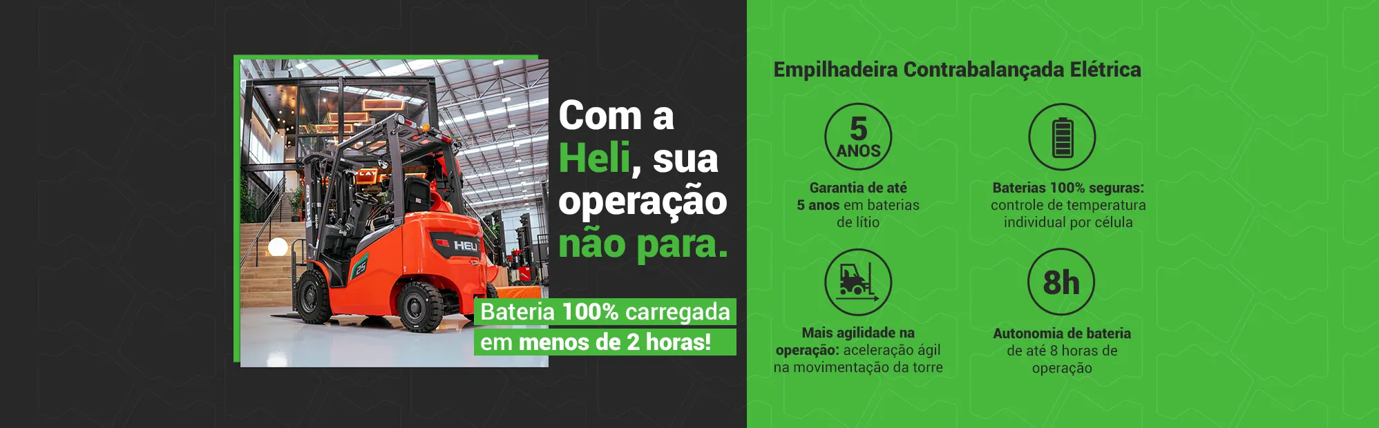 Em 2024, demos um passo ainda maior: nos tornamos dealer oficial da HELI, a marca número 1 em empilhadeiras elétricas de lítio no Brasil. Com isso, passamos a oferecer empilhadeiras a diesel, GLP e elétricas, trazendo inovação, economia e tecnologia de ponta para nossos clientes.